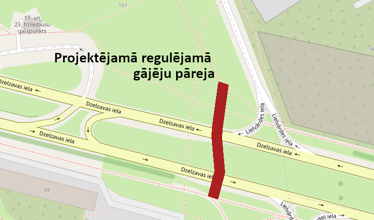 Regulējamas gājēju pārejas izbūve Dzelzavas ielā pie krustojuma ar Lielvārdes ielu